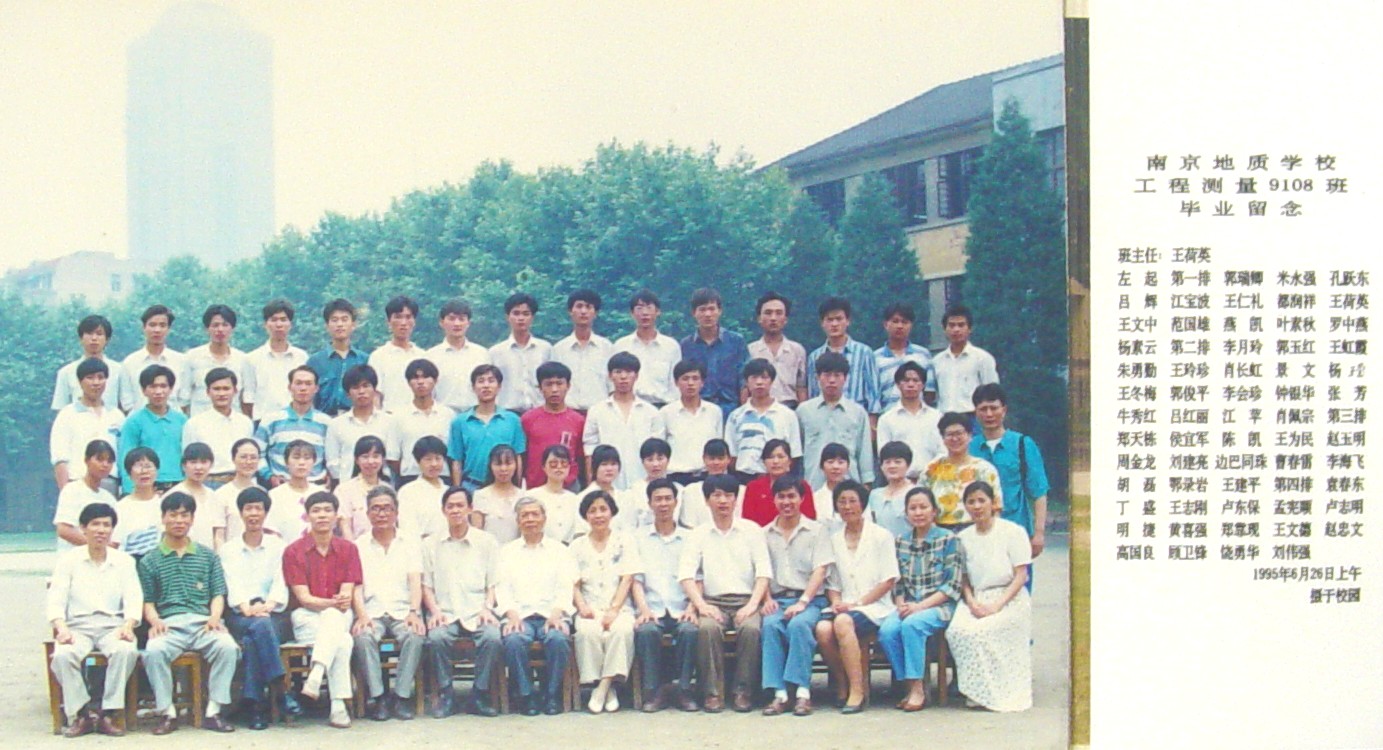 很多同学都开玩笑说结婚成家是十年来最大的收获,其实在这之外,大家在事业上都有了一个良好的开端。据初步估计,一半左右的同学仍在从事本专业工作,经过十年的努力,他们目前都是技术骨干,一些同学还走上了领导岗位,顾卫锋、赵忠文、郑靠现都是测量队长,袁春东已是南通测绘院的副院长了。侯宜军毕业后一直从事城市管线测量,是名符其实的管线测量专家了。李海飞自己成立了湖南威远测绘公司,正在跨越几省的测绘市场上大展宏图。其他同学一分为二,一半从事着与专业相近或相关的工作,另一半则完全改了行,陈凯毕业后保送至河北地质学院学习财会,现在海南中国电信从事财务工作,王文德通过自学,读完法律本科,在江苏泰和律师事务所做律师,我也没务正业,在上海话剧艺术中心做着一些与戏剧相关的事情。