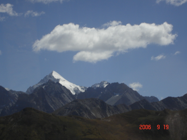 过了松潘县城,约十多公里,便到了川主寺镇,这是一个十字路口,离九寨约还有六十多公里。继续向北到九寨,向东到黄龙,向西北则到若尔盖大草原。此时已是下午6时多了。这里便是我们第一天的住宿点。导游先安排普通团的游客住下吃晚饭,再送我们四人到另一处--聚鑫酒店宾馆。一天十多小时的车程总算平安过来了。当我们领到房间钥匙抬脚上四楼时,老蔡突然说感到脚步有点轻浮。大家立刻表示有同感,这才意识到这已是3100米的高原了,也可能与乘了一天的车有关。同时感到了寒冷。我立刻穿上了借赵忠文的羽绒服。高原的气候,高原反应我们是有思想准备的。吃过晚饭,虽然近七时,因为时差,西部的天尚且明亮,我们走出酒店,在高原的瑟瑟寒风中以雪山为背景照相。只见身边一辆接一辆的客车仍然向九寨方向疾驰。睡前,发现卫生间的热水不是很烫,我们怕感冒,没敢洗澡。虽然在人迹稀少的高原,却也有号称准三星级的酒店,电视电话等等和内地没有两样。而且酒店服务员--一位大眼睛的藏族姑娘很周到地为我们开好电热毯,铺好床铺,使我们度过了难忘而舒适的一夜。