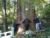 进入景区,沿着路牌的指引漫步其间,林阴遮日,空气清新,令人十分惬意。很容易发现景区的特点是古木参天,岩石幽奇。我们依次游览了狮子口、倒挂莲花、眠牛石、四面峰等景点。有“十里不同天”的树景。特别难忘的是一棵“大树王”,我们六个成人拉手才把它环抱过来。有一棵四十多立方米的柳杉。还有许多我们不知名的树木。更有各种飞禽走兽。如果是年轻人,时间充裕是可以不坐车,直接徒步上山的,那更有一番情趣。